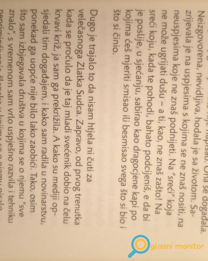 Ovo je knjiga koju nitko nije napisao. Ona se događala. Neizgovorena, nevidljiva, hodala je sa životom. Sa- zrijevala je na uspjesima s kojima se ne znaš nositi, na neuspjesima koje ne znaš podnijeti. Na "sreći” koja ne može ugrijati dušu - a ti, kao, ne znaš zašto! Na sreći koju, kada te pohodi, bahato podcijeniš, e da bi je poslije, u sjećanju, sabirao kao dragocjene kapi po kojima ćeš mjeriti smisao ili besmisao svega što si bio i što si činio. Dugo je trajalo to da nisam htjela ni čuti za velečasnoga Zlatka Sudca. Zapravo, od prvog trenutka kada se pročulo da je taj mladi svećenik dobio na čelu krvavi križ, ja sam ga prekrižila. A kako su mediji op- sjedali tim događajem, i kako sam radila u novinarstvu, ponekad ga uopće nije bilo lako zaobići. Tako, osim što sam izbjegavala društva u kojima se o njemu "sve znalo”, s vremenom sam vrlo uspješno razvila i tehniku neprimjećivanja članaka u kojima se o njemu pisalo. Bilo je tu svega. Senzacionalizma, banalnosti, do- bronamjernosti, gluposti, no, u svim varijantama Sudac